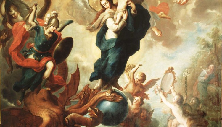 അദ്ദേഹം പറയുന്നു: “സ്വർഗ്ഗത്തിൽ വലിയ ഒരടയാളം കാണപ്പെട്ടു: സൂര്യനെ ഉടയാടയാക്കിയ ഒരു സ്ത്രീ. അവളുടെ പാദങ്ങൾക്കടിയിൽ ചന്ദ്രൻ. ശിരസ്സിൽ പന്ത്രണ്ടു നക്ഷത്രങ്ങൾകൊണ്ടുള്ള കിരീടം.” വാസ്തവത്തിൽ ഈ അടയാളം ദൈവിക പദ്ധതിയാൽ സ്വർഗ്ഗത്തിൽ പ്രത്യക്ഷപ്പെടുകയും, അതു കണ്ടിട്ടു  തങ്ങളെത്തന്നെ  ദൈവത്തിൻറെ തിരുഹിതത്തിനും  കൽപ്പനകൾക്കും വിധേയമാക്കുന്നതിനുവേണ്ടി നല്ല മാലാഖമാർക്കും ദുഷിച്ച മാലാഖമാർക്കും അതു കാണിച്ചുകൊടുക്കുകയും ചെയ്ത ഒന്നാണ്. അങ്ങനെ, നല്ല മാലാഖമാർ നല്ലതു തിരഞ്ഞെടുക്കുകയും ദുഷിച്ച മാലാഖമാർ തിന്മയിലേക്കു തിരിയുകയും ചെയ്യുന്നതിനുമുമ്പ്, അവർ അതു നേരിൽ കണ്ടു. മനുഷ്യപ്രകൃതം സൃഷ്ടിക്കുന്നതിലുള്ള ദൈവത്തിൻറെ കരവേലയുടെ അത്ഭുതകരമായ പരിപൂർണ്ണതയുടെ ദർപ്പണം എന്ന പോലെയായിരുന്നു ഇതും വെളിപ്പെടുത്തപ്പെട്ടത്. ക്രിസ്തുവിൽ ദൈവത്വവും മനുഷ്വത്വവും ഒരേസമയത്ത് ഒന്നിച്ചു സ്ഥിതിചെയ്യുന്നതിൻറെ രഹസ്യം, ദൈവം ഈ മാലാഖമാർക്ക് ഇതിനകംതന്നെ വെളിപ്പെടുത്തിയിരുന്നുവെങ്കിലും, അത് അവർക്കു മറ്റൊരു വിധത്തിൽ കൂടി വെളിപ്പെടുത്താൻ അവിടുന്ന് ആഗ്രഹിച്ചു.   അതു  നമ്മുടെ കർത്താവിൻറെ മനുഷ്യാവതാരം  കഴിഞ്ഞാൽ ദൈവം ചെയ്യാനിരുന്ന ഏറ്റവും പരിപൂർണ്ണവും വിശുദ്ധവുമായ ഒരു  സൃഷ്ടിയിൽകൂടിയായിരുന്നു.