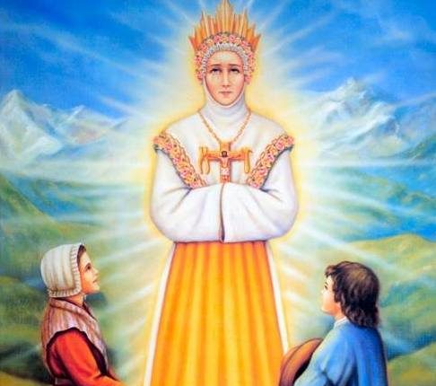 ഇതു പറയുമ്പോഴെല്ലാം മാക്സിമിനും മെലാനിയും നിർന്നിമേഷരായി, നിശ്ചലരായി നോക്കിനിൽക്കുകയായിരുന്നു. എന്നാൽ ആ സുന്ദരിയായ സ്ത്രീ മടങ്ങിപ്പോകാൻ ഭാവിക്കുകയാണെന്നു കണ്ടപ്പോൾ അവർ ഓടി അടുത്തെത്തി. അവരോടൊപ്പം ഏതാനും ചുവടുകൾ നടന്ന ആ സ്ത്രീ മുകളിലേക്കുയർന്ന് അപ്രത്യക്ഷയായപ്പോൾ മാക്സിമിനും മെലാനിയും രണ്ടു കാര്യങ്ങൾ ശ്രദ്ധിച്ചു. ആ സ്ത്രീയുടെ പാദങ്ങൾ നിലത്തു മുട്ടിയിരുന്നില്ല എന്നതും കരച്ചിൽ അവസാനിപ്പിച്ചെങ്കിലും ആ മുഖം ദുഃഖസാന്ദ്രമായിരുന്നു എന്നതും.